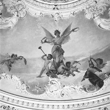 U decentnoj velikoj vijećnici bile su odmah izložene tri velike slike koje je izveo Giovanni Simonetti: Andrija Ljudevit Adamić (1864.), Car Franjo Josip I. (1865., izgubljeno), te Iginio Scarpa (1866.). Taj prvi ozbiljni riječki slikar–dekorater, školovan na Akademiji u Veneciji, izveo je, znatno ranije, za Municipij i manje portrete Car Ferdinand V. (1841) i Car Ferdinand II. (1842.), dok je za Riječku županiju, smještenu u palači Zmaić na obali, izveo monumentalne portrete Velikog župana Bartola Benedikta Zmaića i njegove žene Ane Zmaić (svaki 230x157 cm, 1869.).